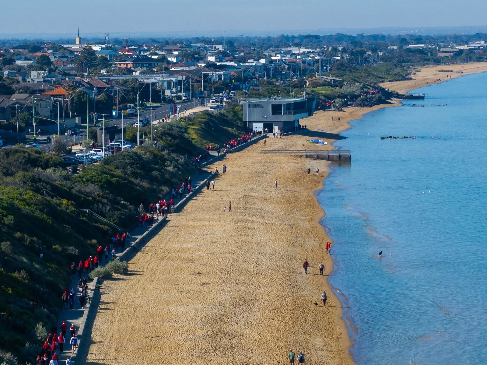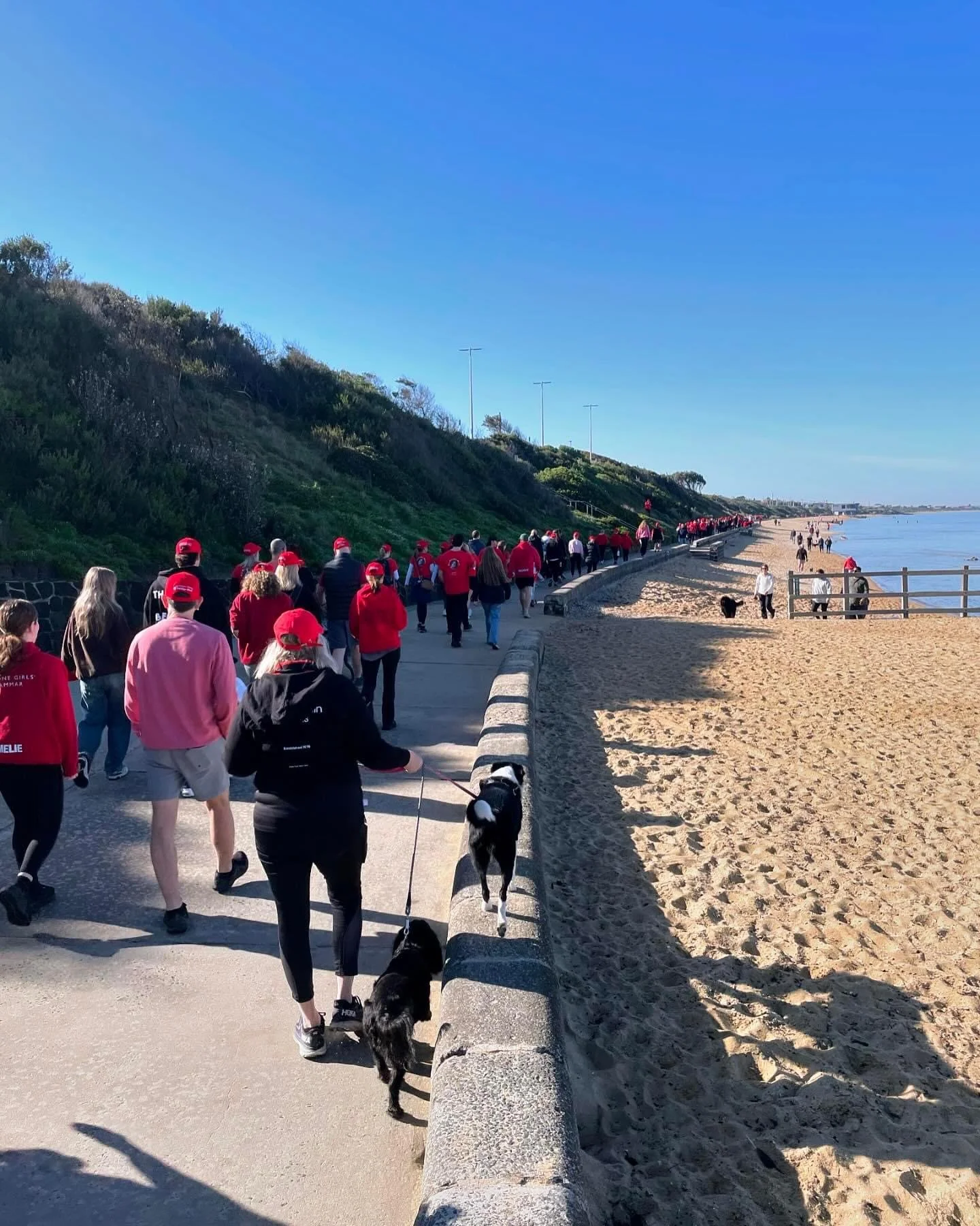 The sun was shining and our spectacular Mentone/Parkdale foreshore as 450 walkers, wearing red to honour Lachie, walked our beautiful beach path. Many people stopped to place a red flower on Lachie's memorial seat opposite Seagull Rock. This was a beautiful and moving display of the power of community in coming together to show so much love and compassion for the loss of a promising young man taken in such incomprehensible tragic circumstances. It is evident to all that beyond Lachie's family and friends there is a community also deeply affected by this tragedy. Lachie's family wish to acknowledge everyone who stopped to place a flower on Lachie's his seat, for showing such respect and compassion. These images bring much comfort to his family knowing he will never be forgotten.